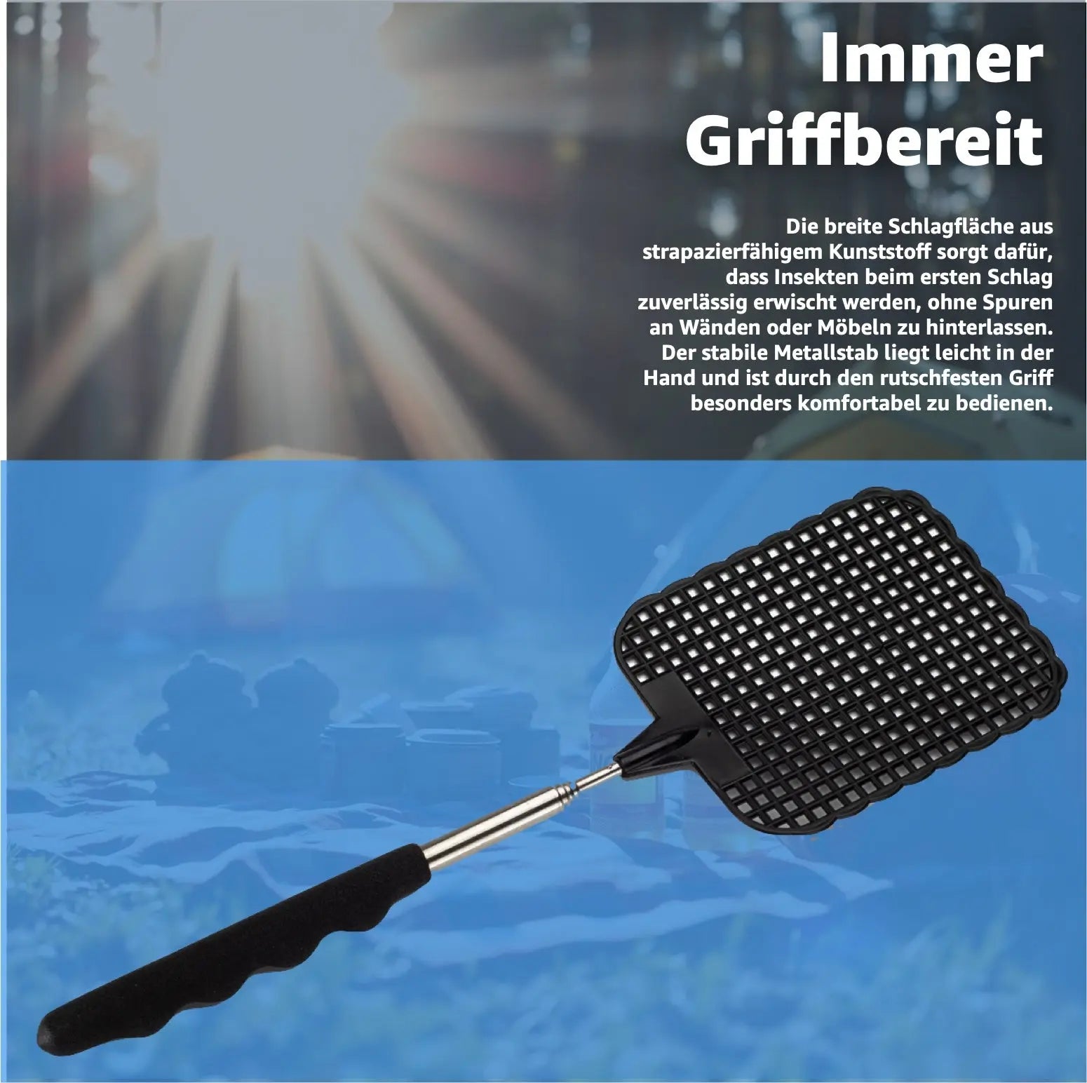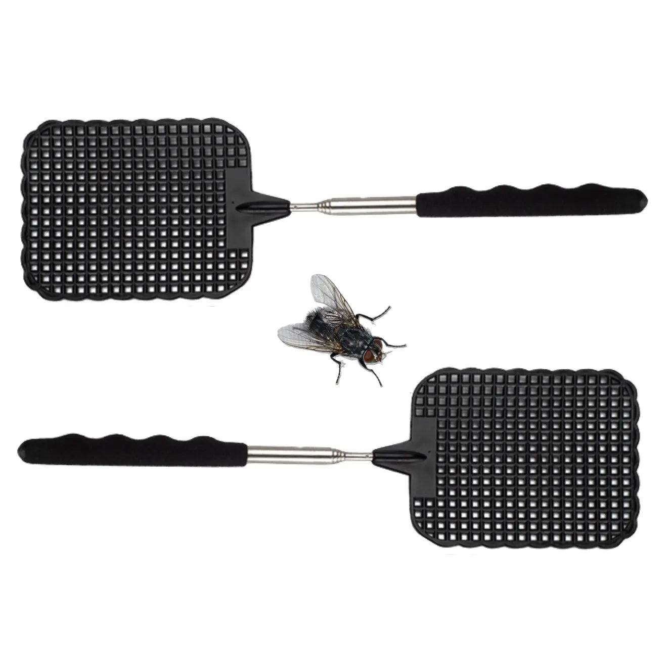 2X Fliegenklatsche XXL 75 cm ausziehbar - Insektenklatsche mit Teleskop für Fliegen & Insekten