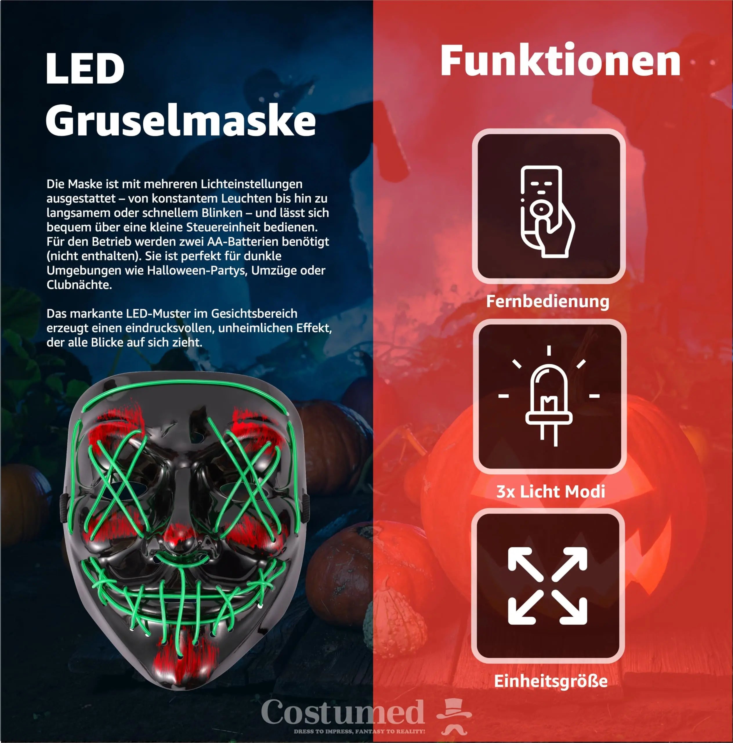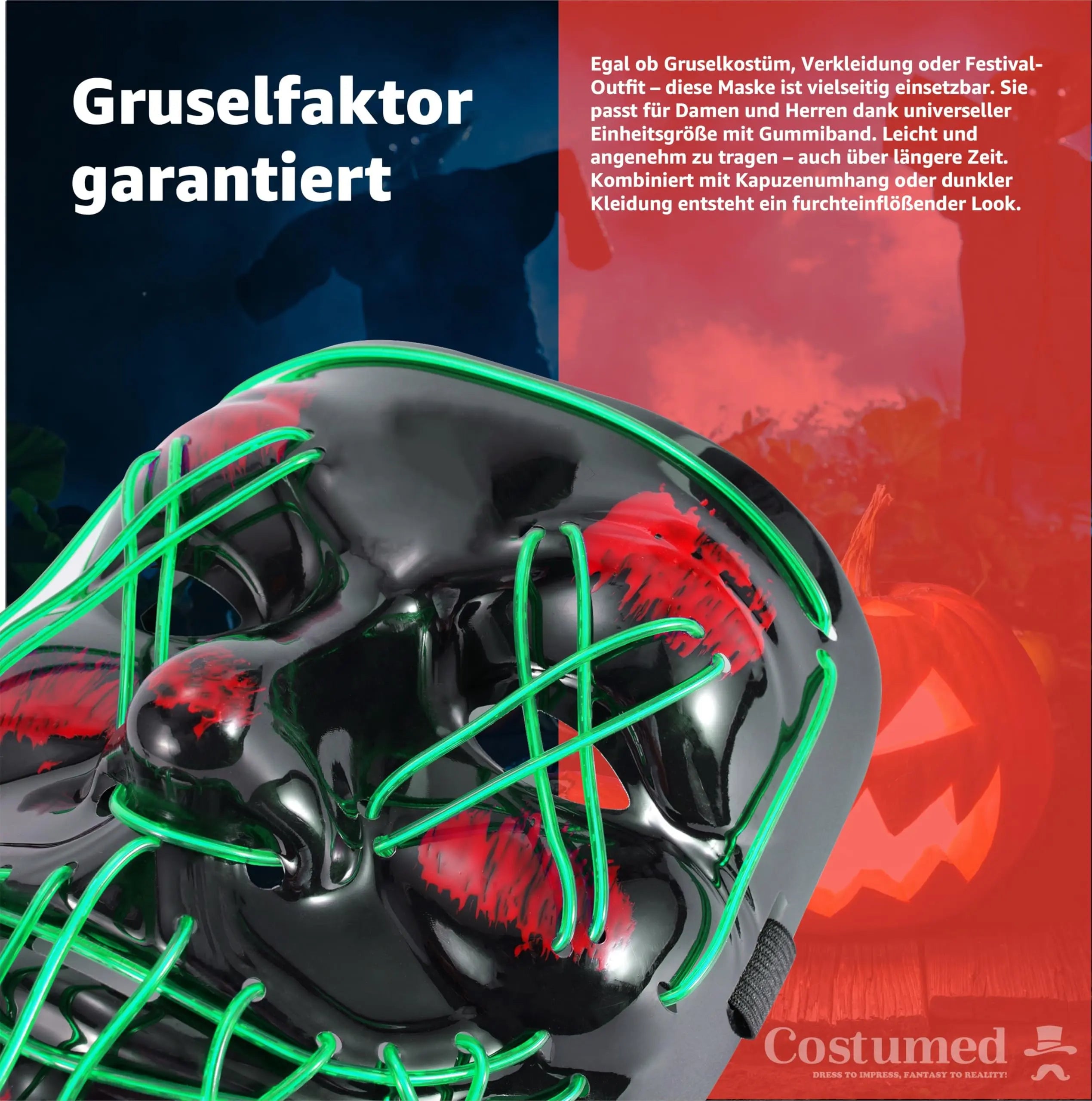 Aber warum genau sollte man sich für diese Halloween Maske entscheiden? Die Antwort liegt in ihrer Vielseitigkeit und dem hohen Qualitätsstandard. Während andere Masken oft nur statisch sind, ermöglicht diese Maske lebendige Effekte. So kannst du deine Kreativität ausleben und dein Kostüm durch die LED-Funktion noch besser inszenieren. Weil die Maske zudem bequem zu tragen ist, bleibt der Spaß während des ganzen Abends erhalten.