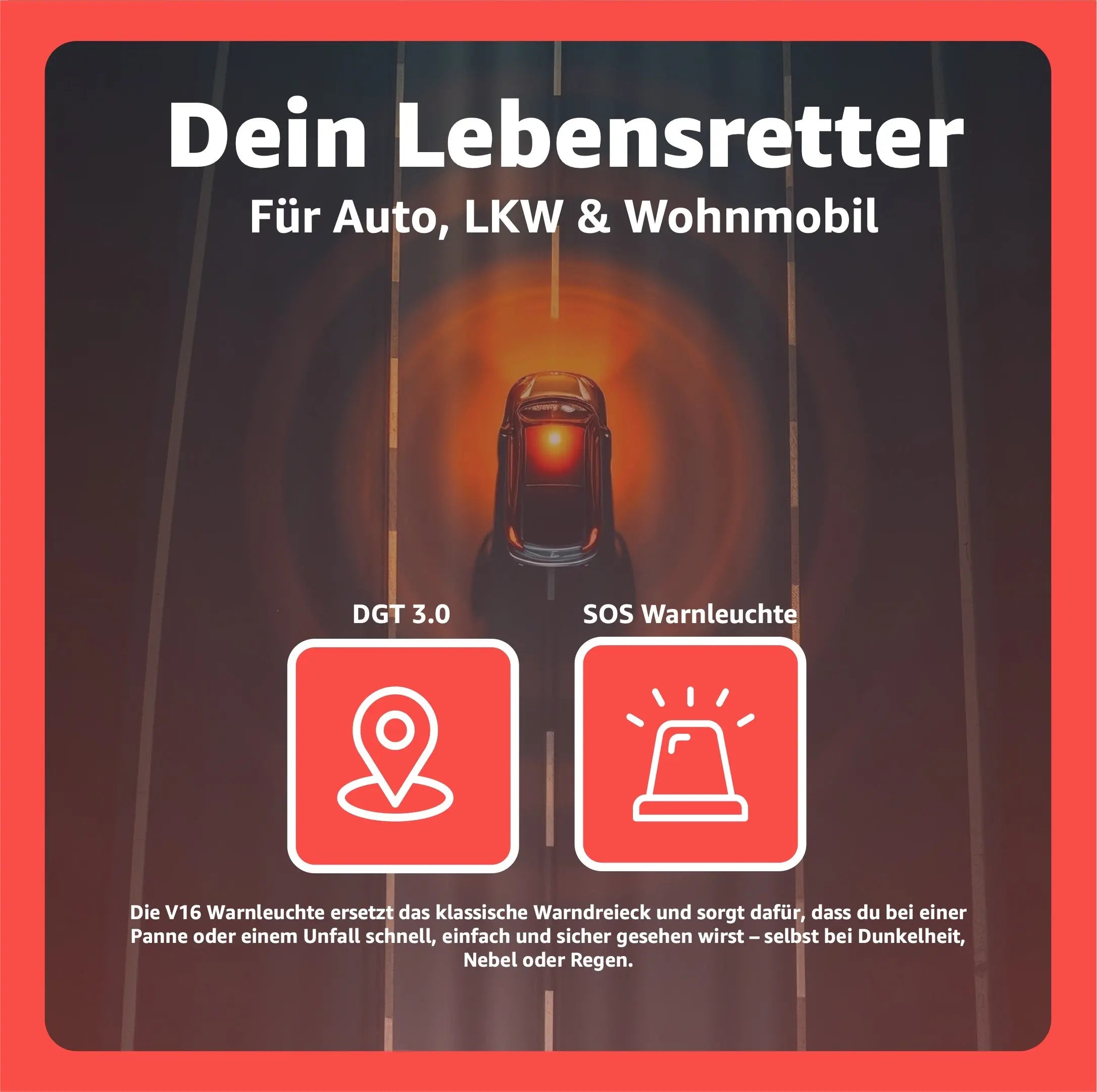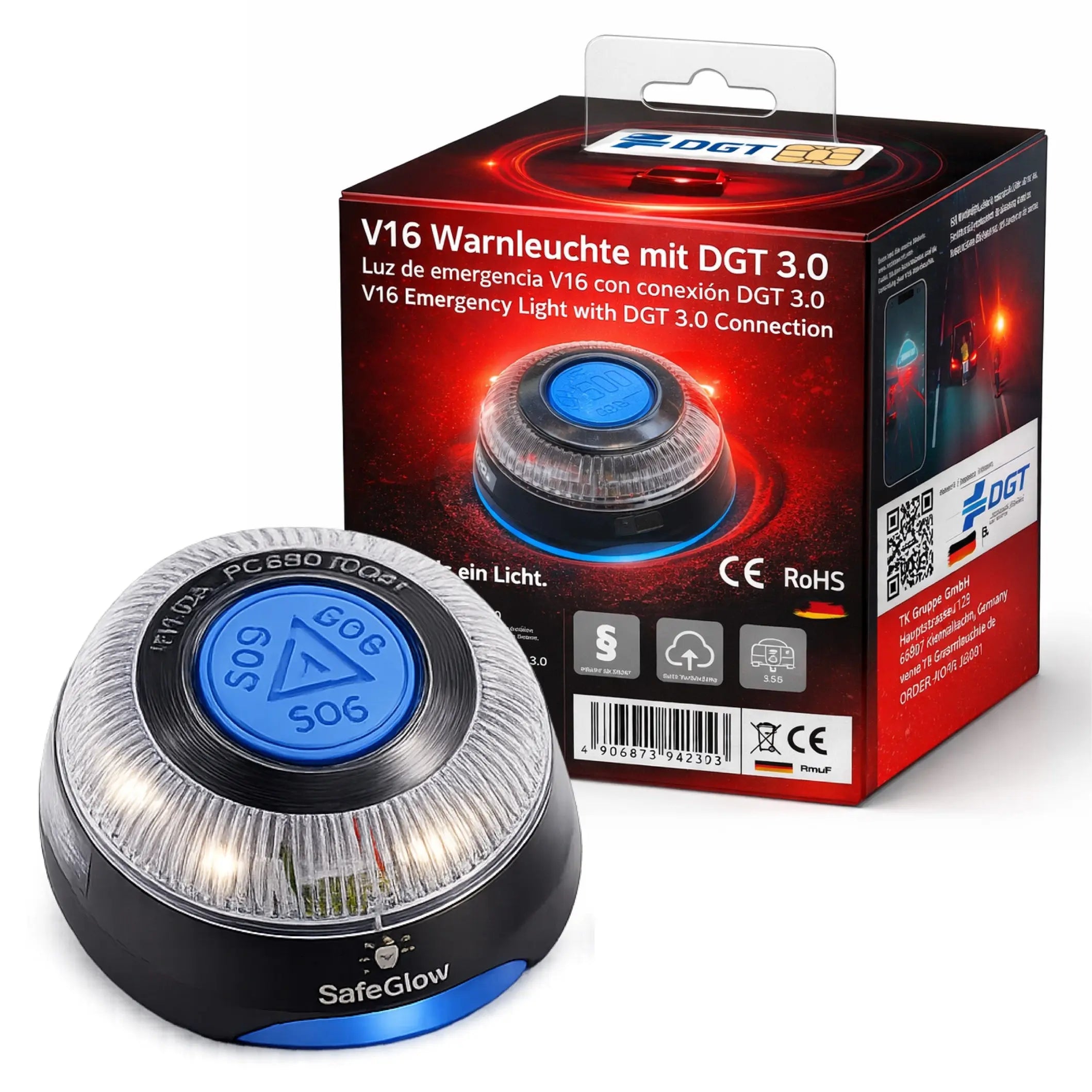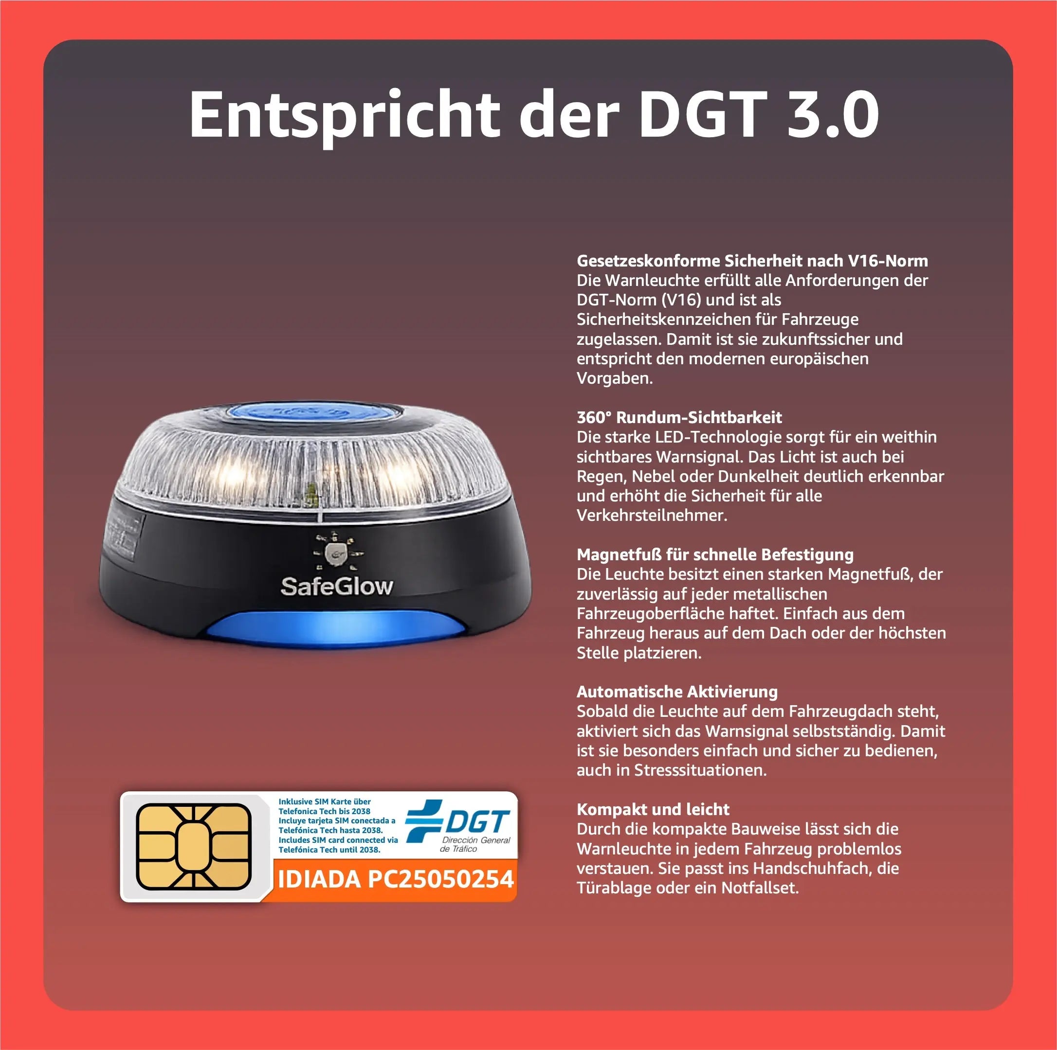 LED Warnleuchte V16 DGT 3.0 mit SIM – Notfallleuchte Auto & Motorrad – IDIADA PC21020060 Zertifikat