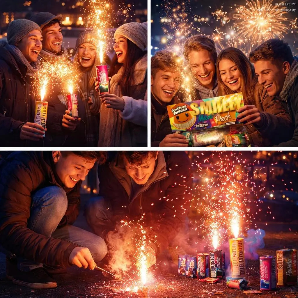 Hochwertiges Jugendfeuerwerk: Happy Sparks® Smiley Maxi Pack - 8-teiliges