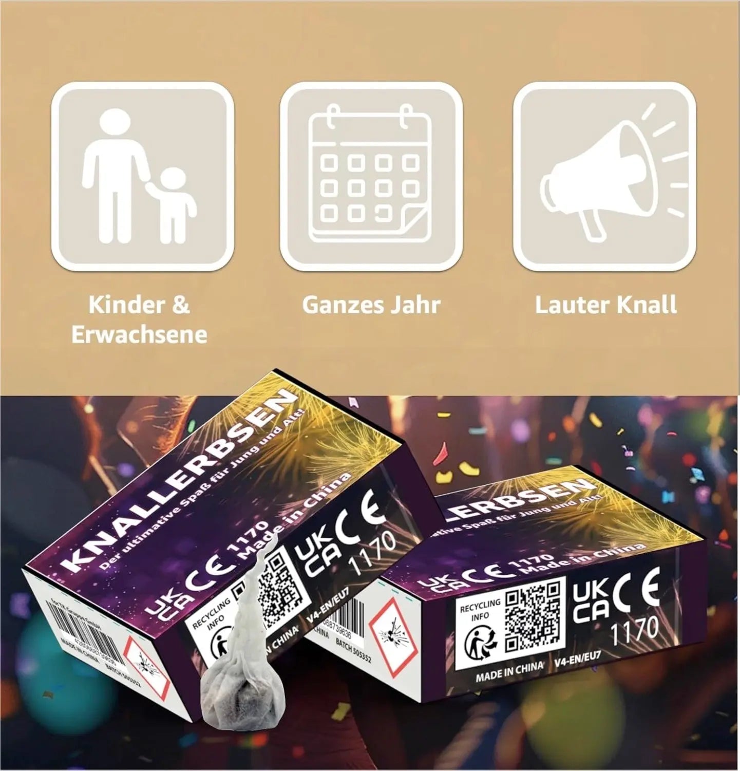 Reichhaltiger Inhalt: Jede Packung enthält viele Knallerbsen, ideal für alle Altersklassen.