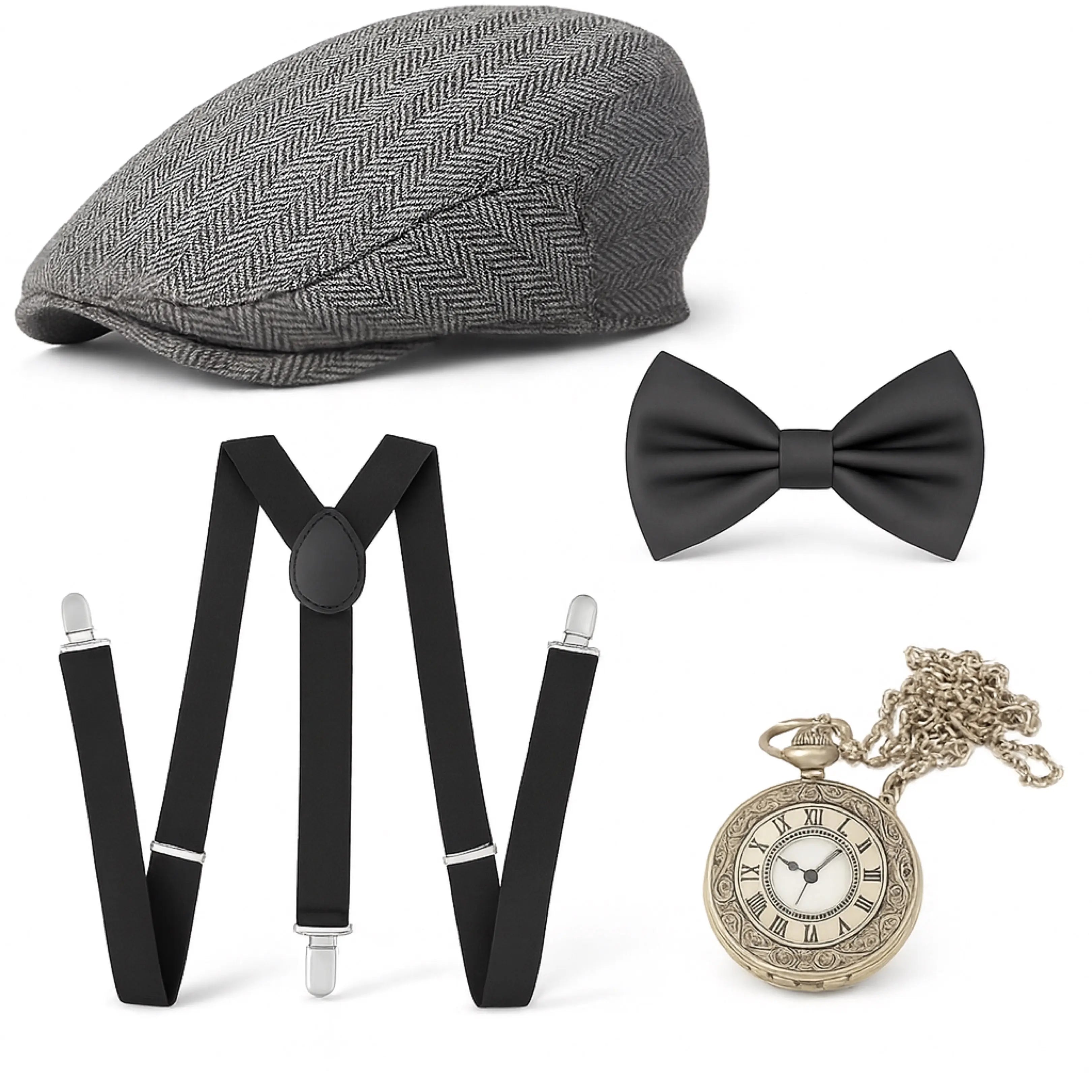 5 in 1 Kostüm – 20er & 1920 Jahre Accessoires Herren Männer Set – Verkleidung wie Gatsby, Charleston für Fasching & Karneval – Kostüm & Fastnachtskostüme