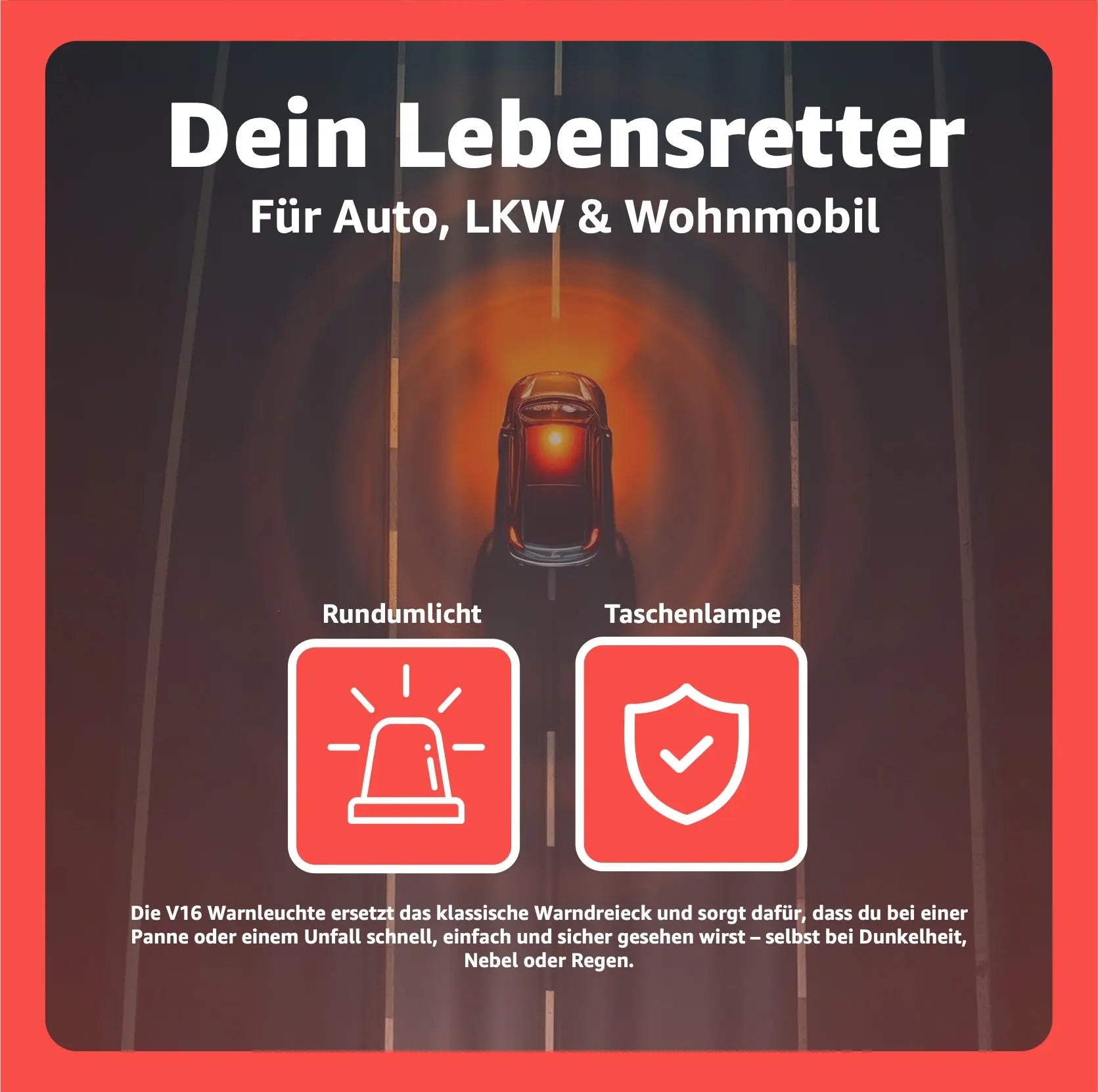 5x Notfall-Warnleuchte V16 – Pannenlicht & Signallicht – gesetzlich vorgeschrieben ab 2026 in Spanien – für Fahrzeuge & Motorräder