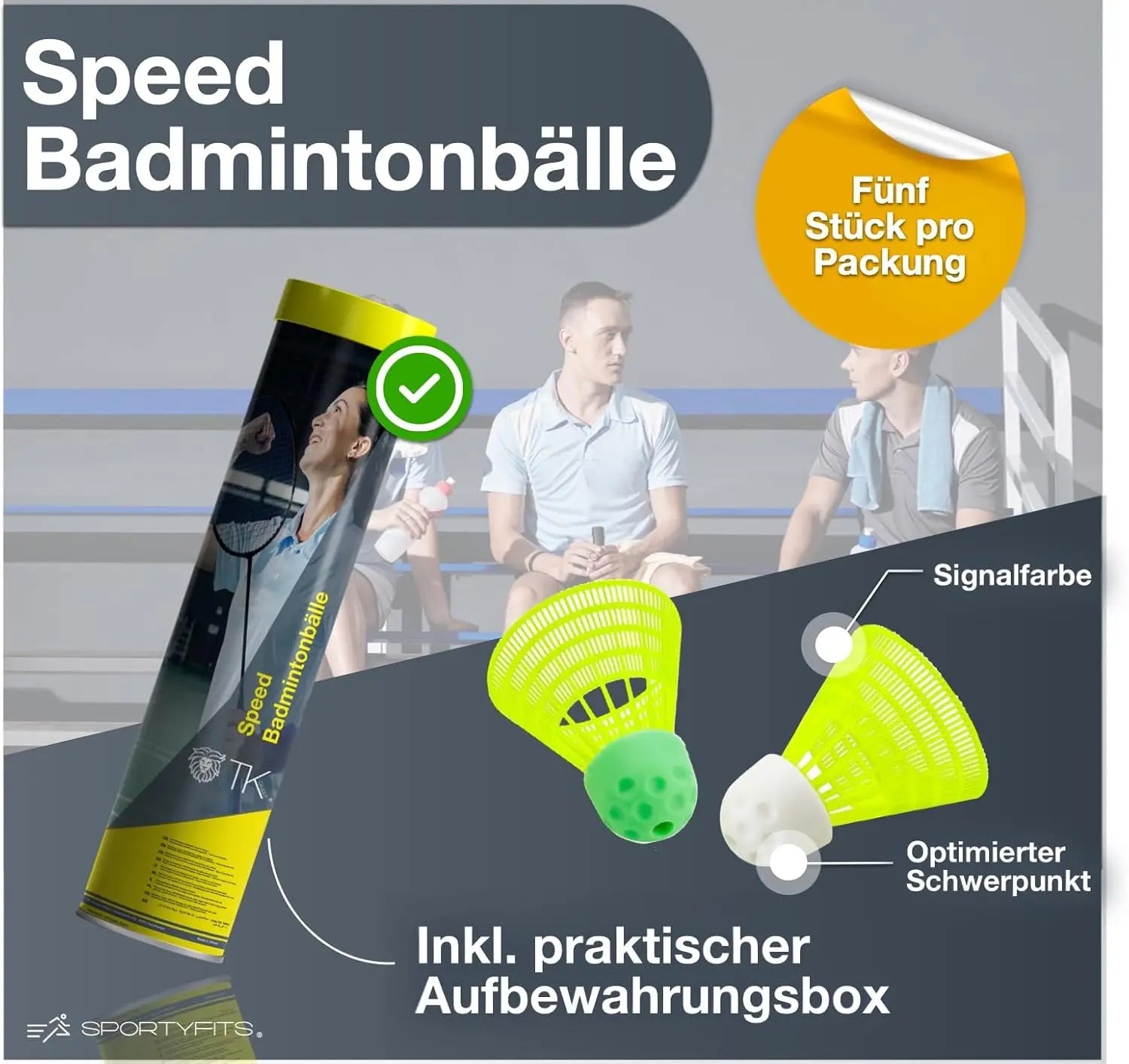 5x Speedbadminton Federbälle schnell gelb Badmintonbälle für Training & Wettkampf