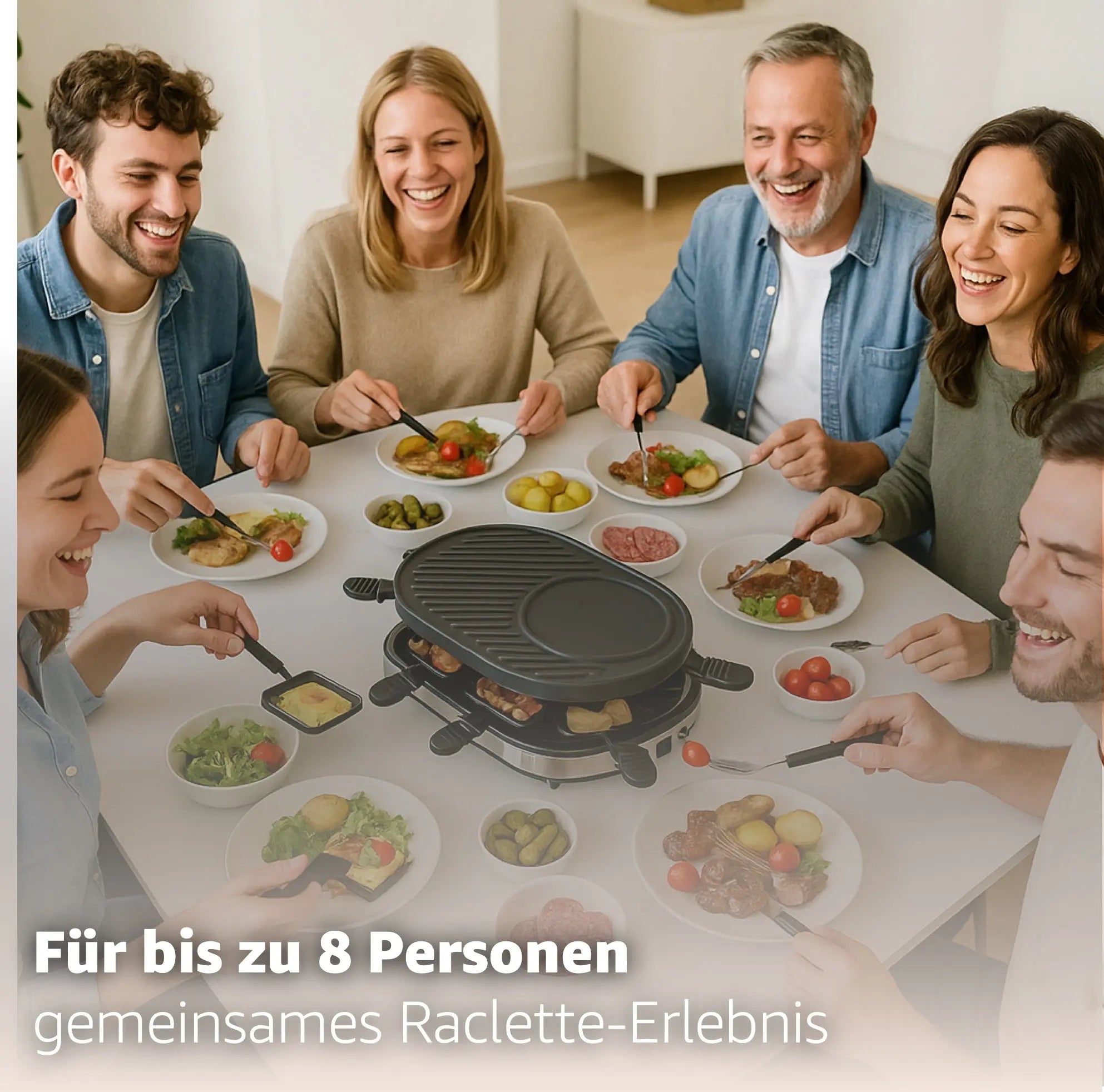Raclette-Set für 8 Personen Grill rund oval - Tischgrill inkl. Pfännchen & Schaber