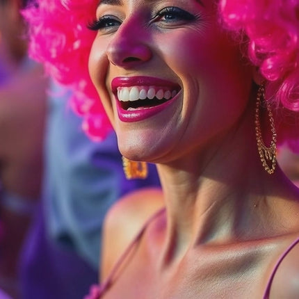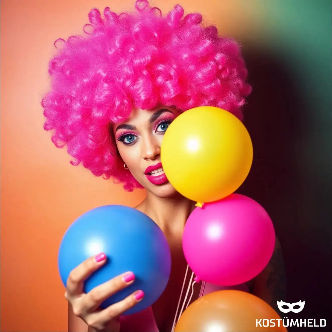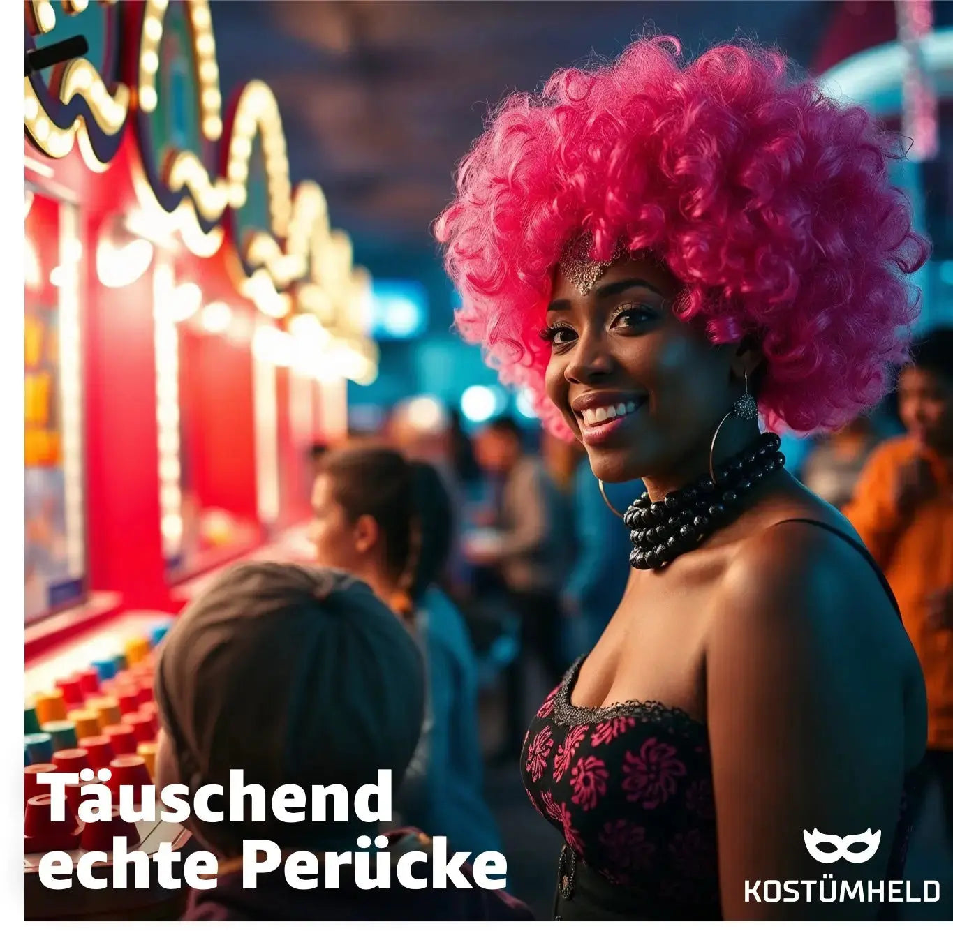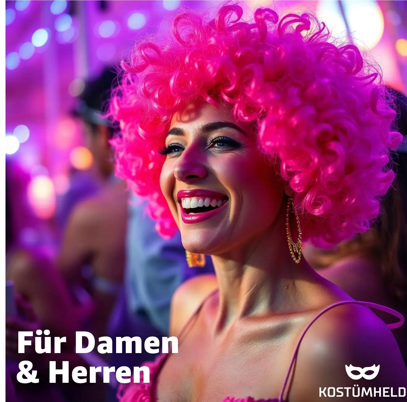 Afro Lockenkopf Perücke Wig (Pink) – Vokuhila Kostüm zu Retro neon 80er 90er Outfit – für Fasching & Karneval