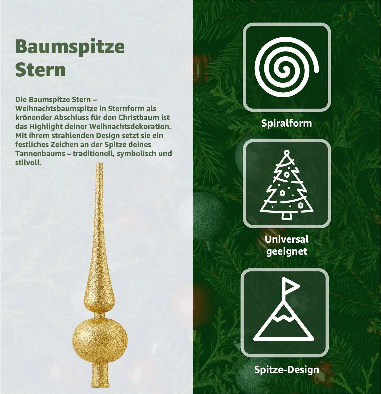 Baumspitze für Weihnachtsbaum Christbaumspitze Aufsatz für Tannenbaum Weihnachtsdekoration (Spitze-Gold)