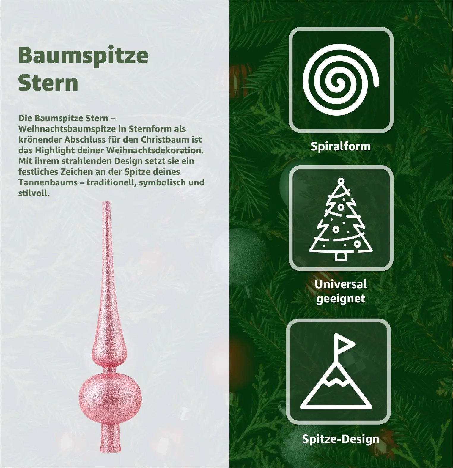Baumspitze für Weihnachtsbaum Christbaumspitze Aufsatz für Tannenbaum Weihnachtsdekoration (Spitze-Pink)