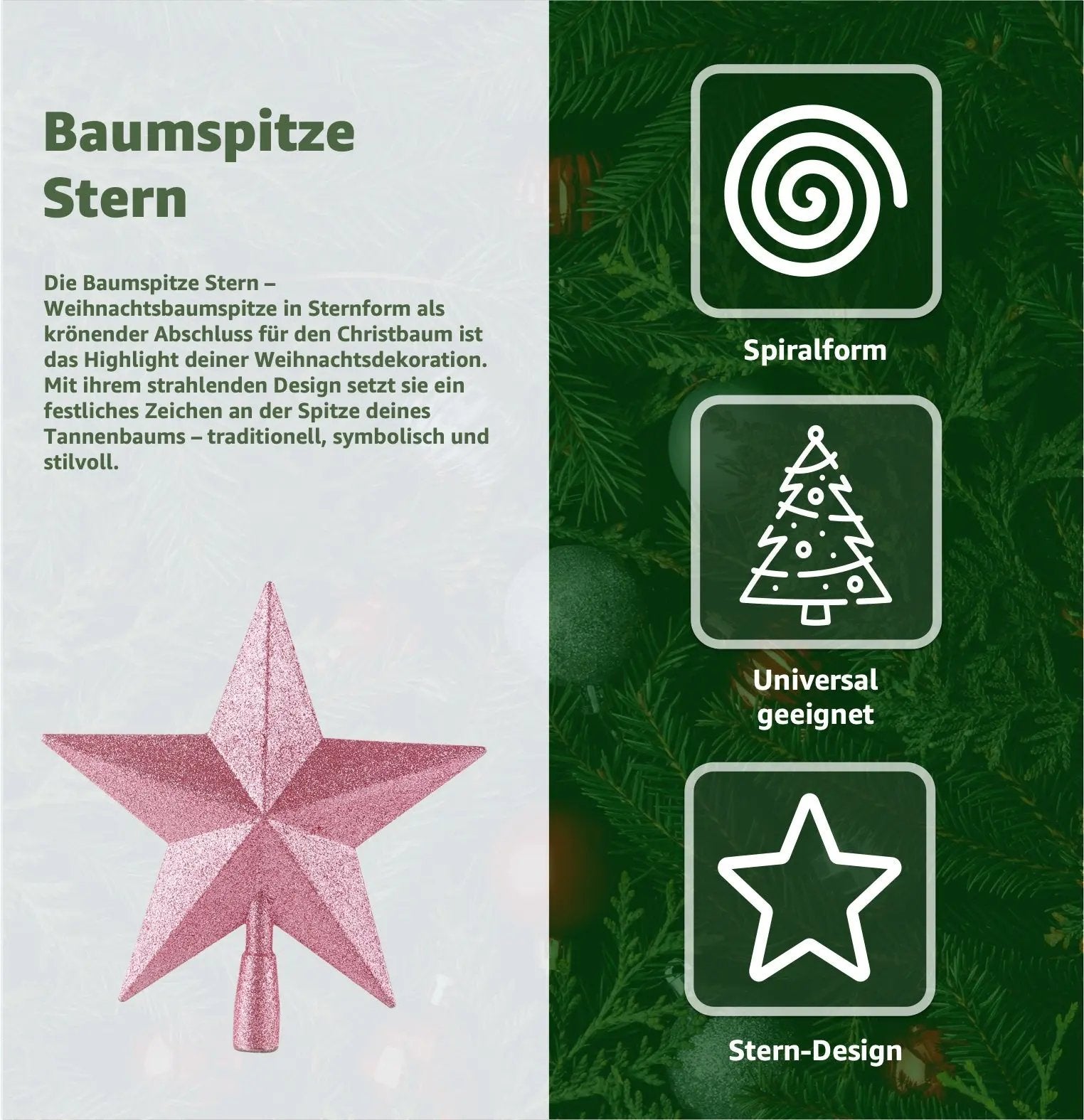 Baumspitze für Weihnachtsbaum Christbaumspitze Aufsatz für Tannenbaum Weihnachtsdekoration (Stern-Voll-Pink)