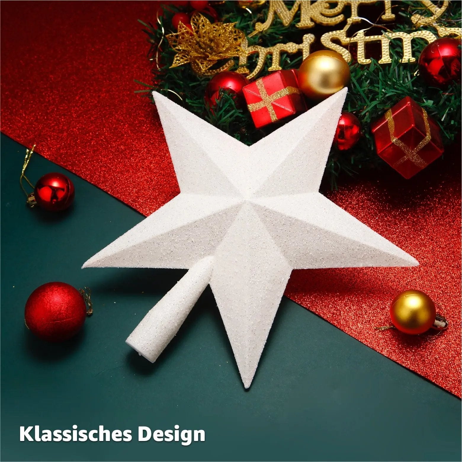 Baumspitze für Weihnachtsbaum Christbaumspitze Aufsatz für Tannenbaum Weihnachtsdekoration (Stern-Voll-Weiss)