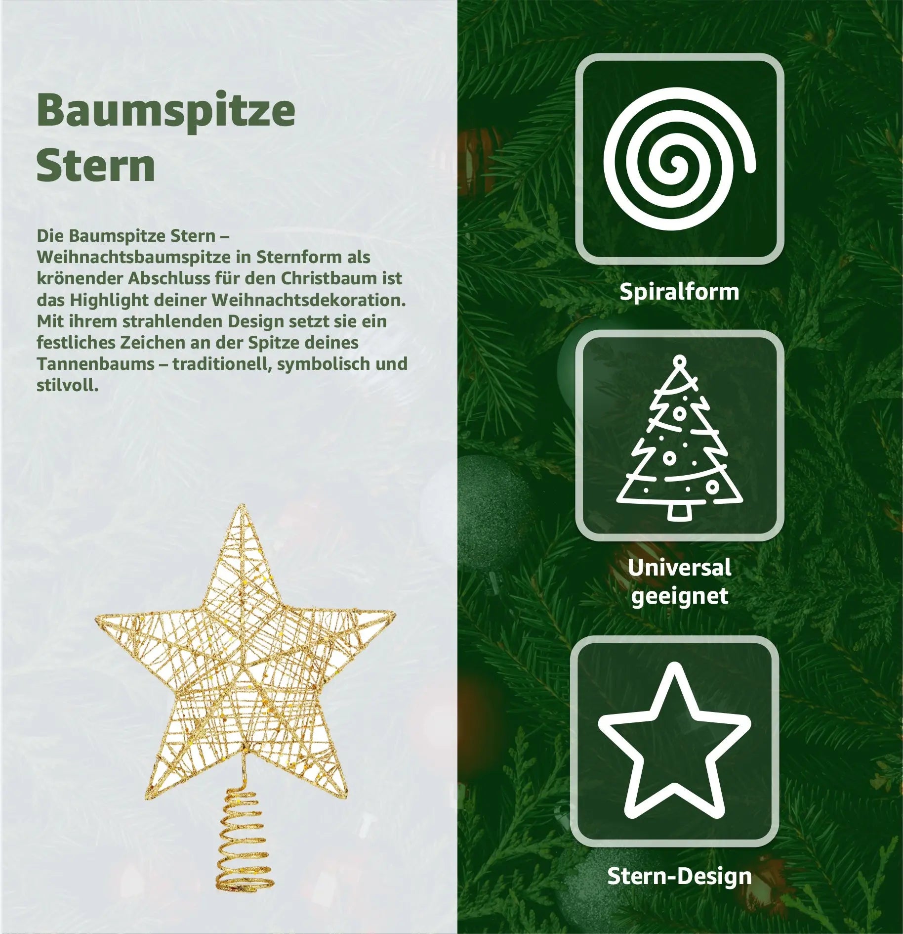 Baumspitze Stern Gold - Christbaumspitze Baumspitze Spitze Aufstecker für Tannenbaum