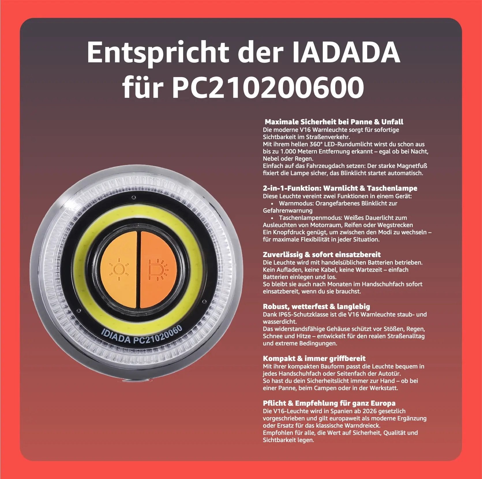 Notfall-Warnleuchte V16 IDIADA – Pannenlicht & Signallicht – für Fahrzeuge & Motorräder