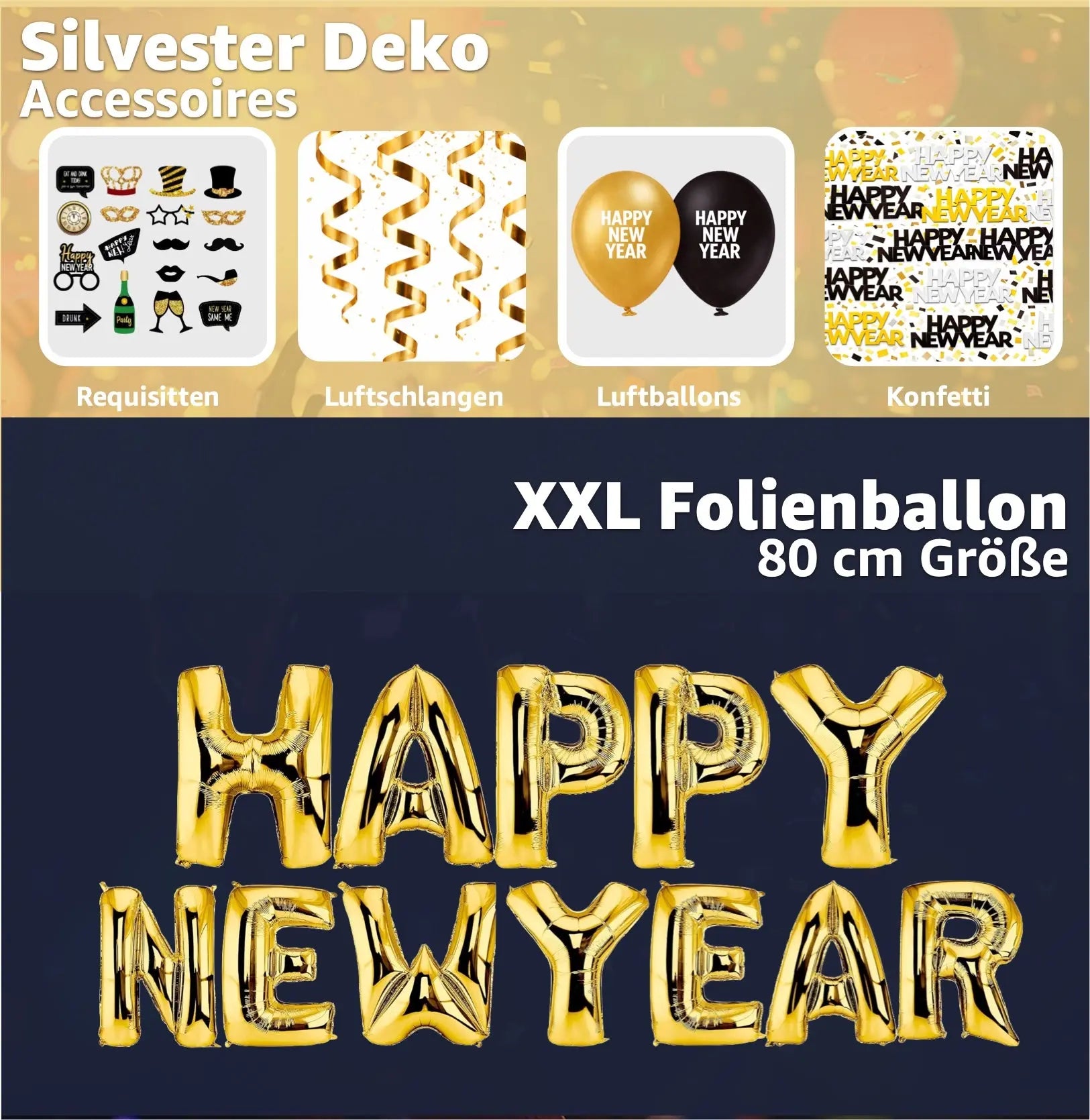 Silvester Deko XXL Set - 2026 - mit über 50 Teilen wie XXL Happy new year Ballon, Luftschlangen, Konfetti uvm