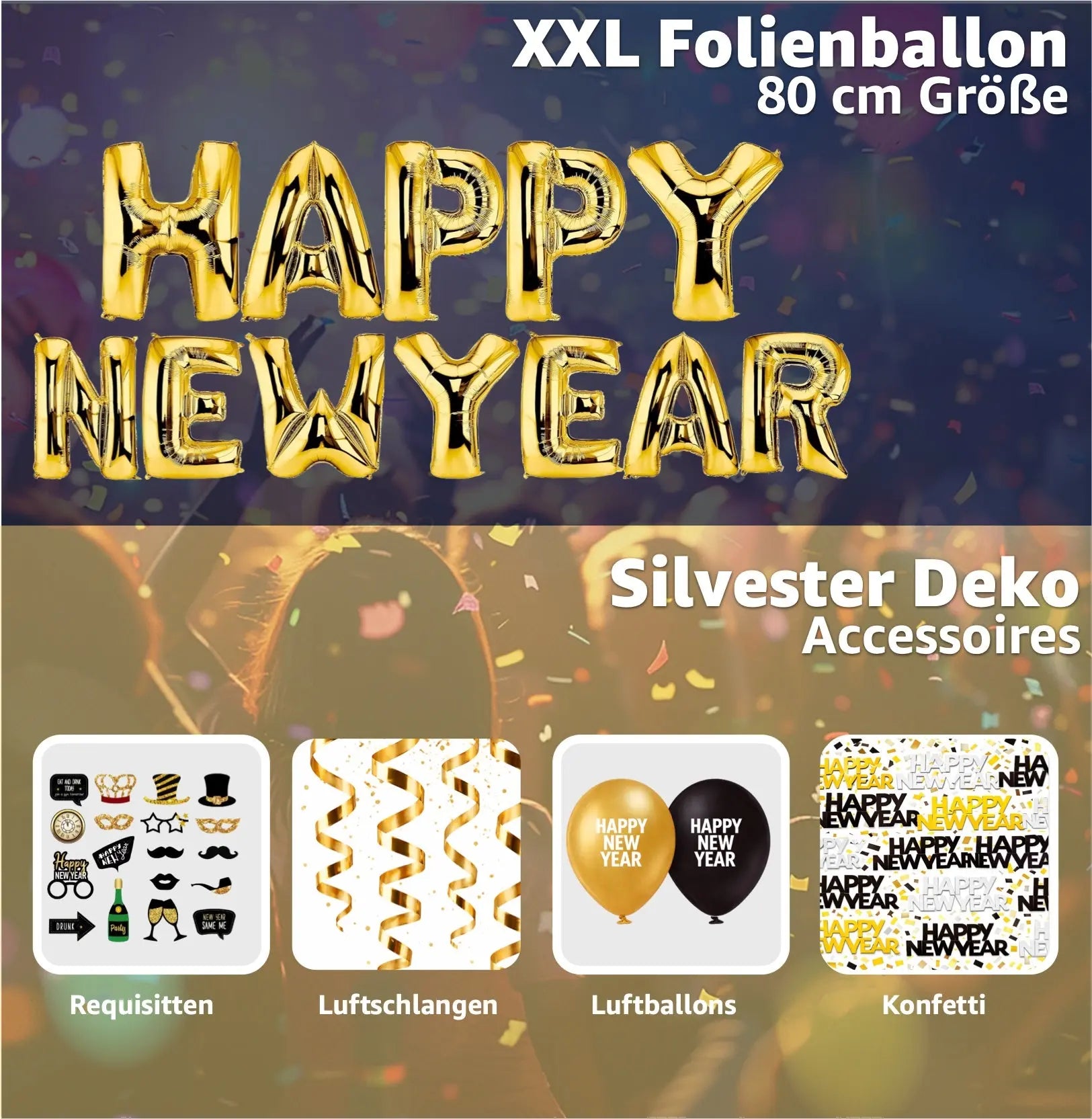 XXL Silvester Deko 2026 Set - WIEDERVERWENDBAR Happy New Year