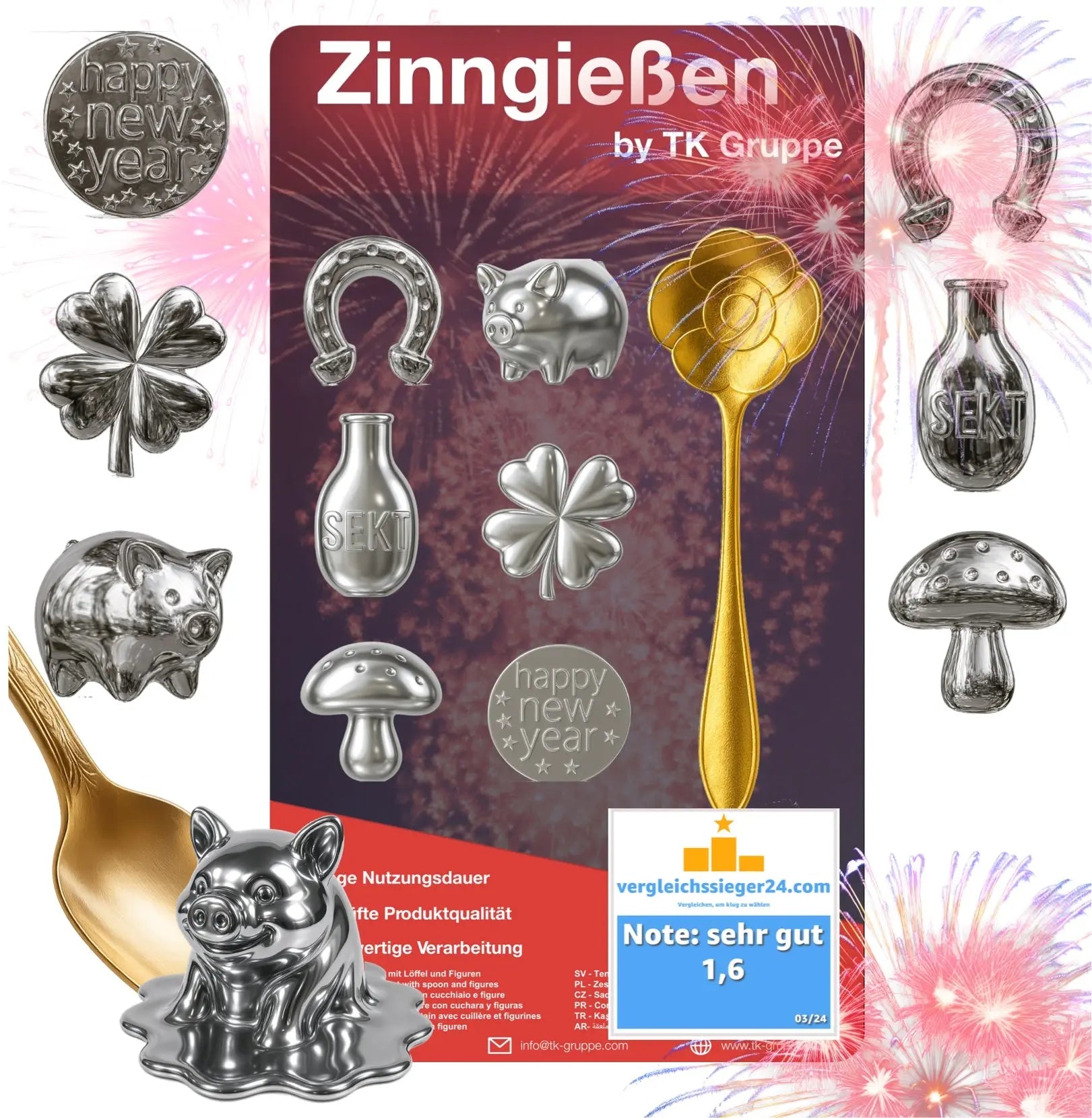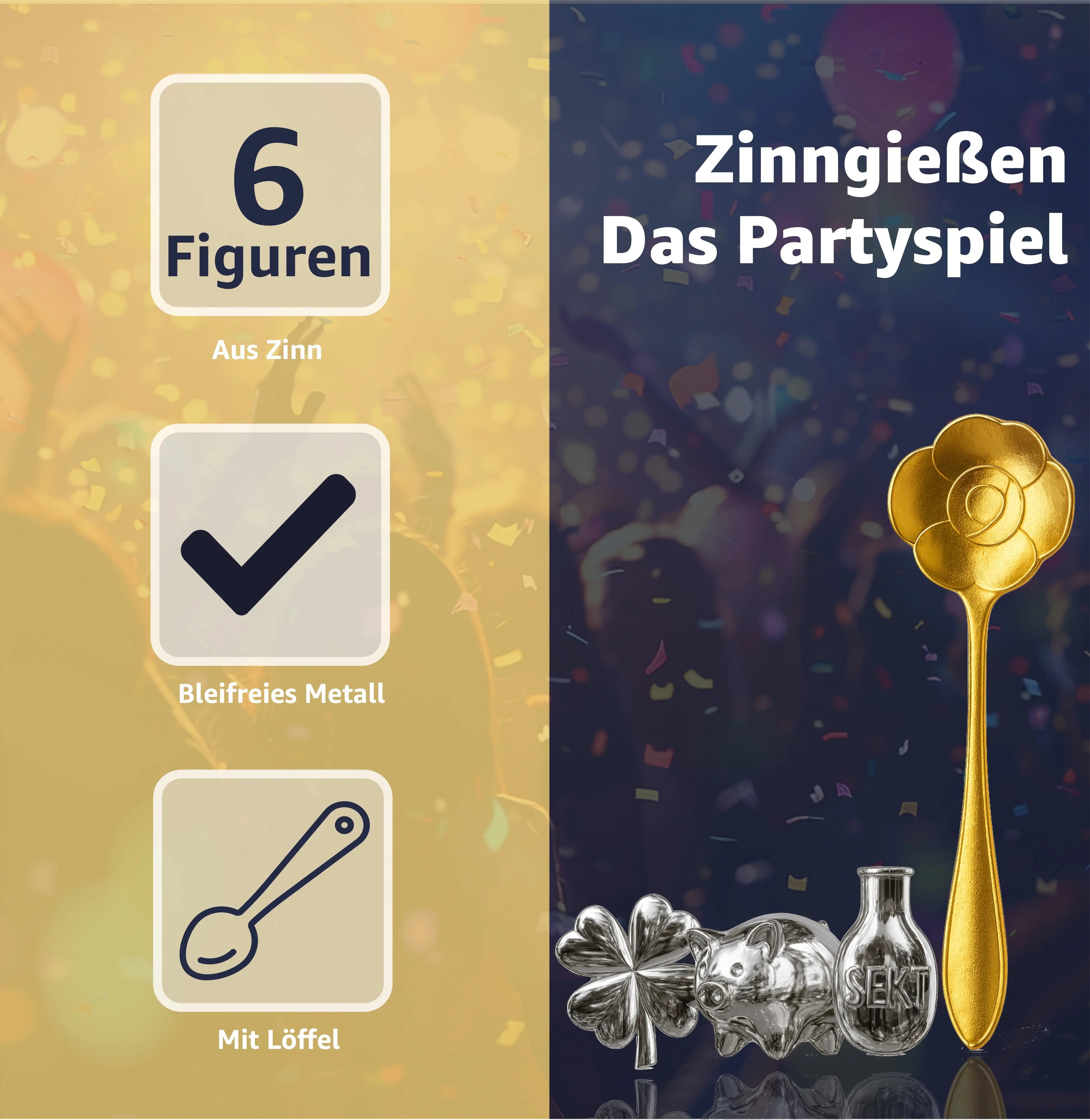7er Zinngießen Set Zinn Giessen wie Bleigießen mit Löffel & Orakelheft - Gesellschaftspiele