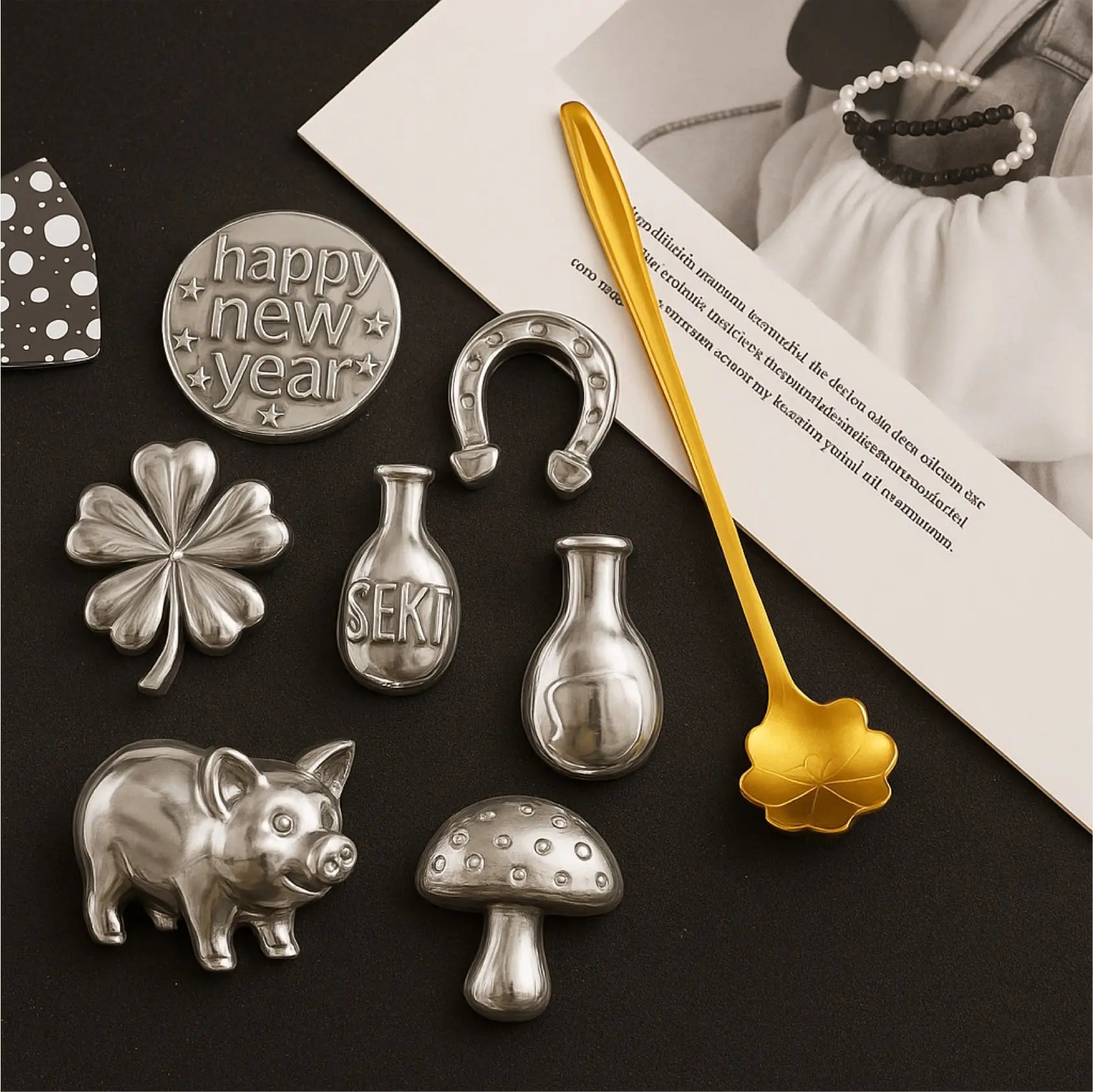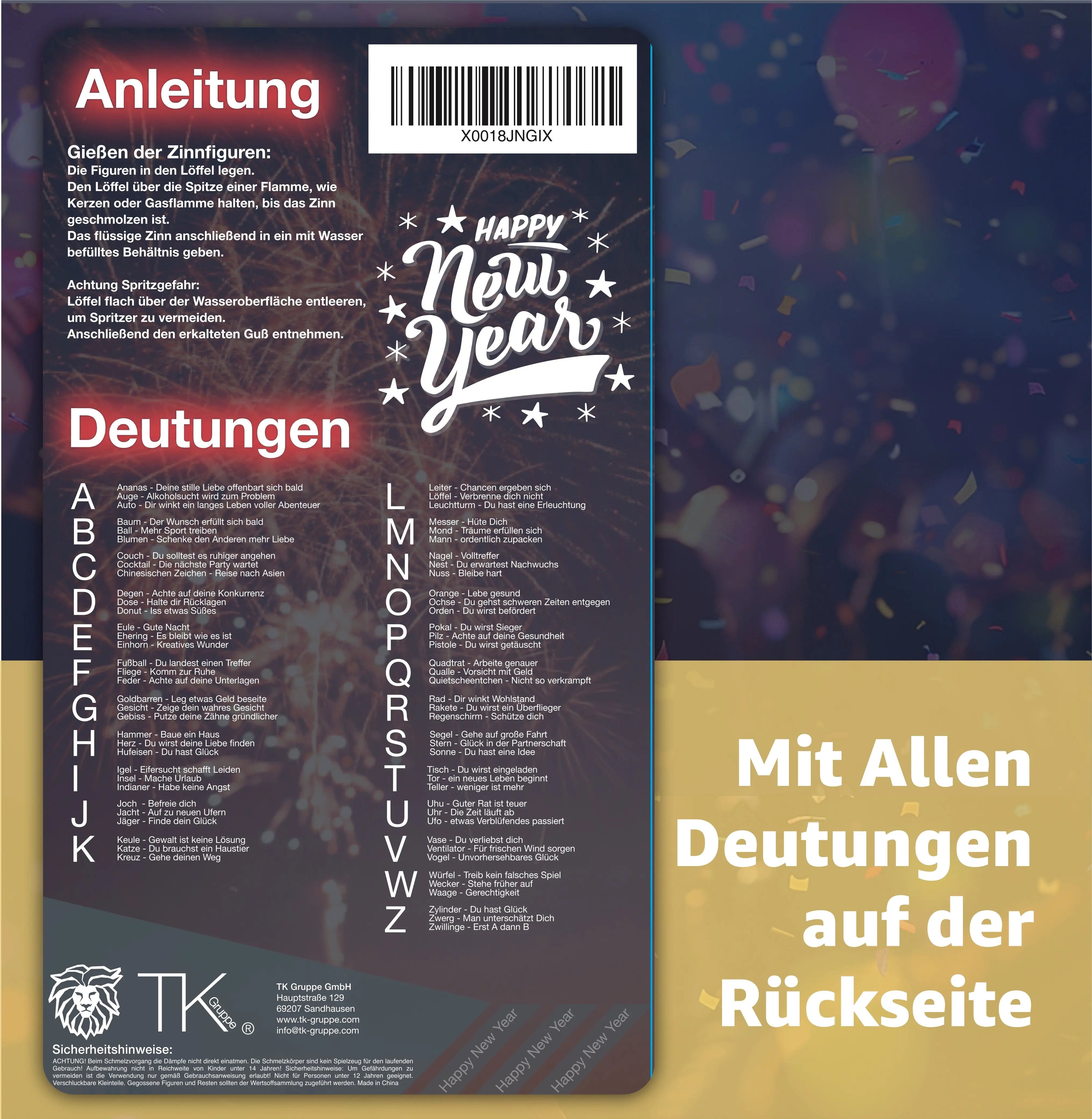 • Zinngussteile: Enthält 6 Zinngussteile in der Form von Happy New Year für kreative Gestaltung.